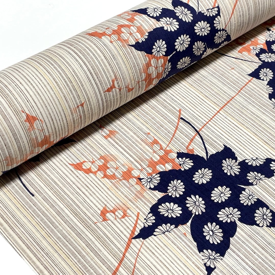 桜七軒 浴衣反物・生成り紅葉に菊